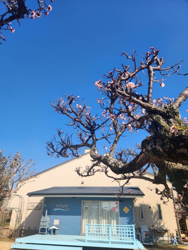 庭の梅が、ぽつぽつと咲きはじめました。